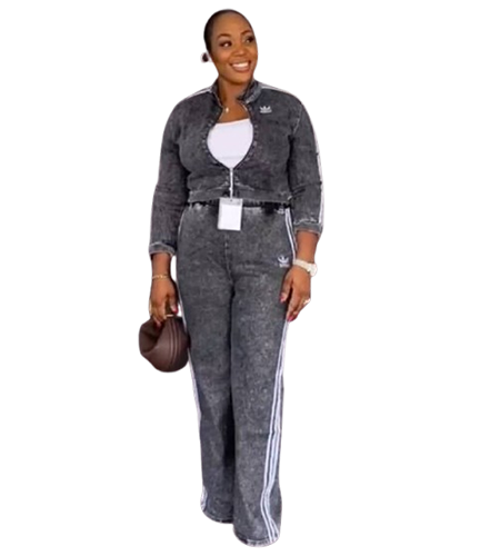 Affirmez votre style avec cet ensemble deux pièces tendance, alliant confort et élégance moderne. Composé d’une veste zippée ajustée et d’un pantalon taille haute à coupe droite, il séduit par son effet gris délavé et ses bandes latérales contrastées qui allongent la silhouette. Idéal pour un look casual chic, cet ensemble se porte aussi bien au quotidien que pour des sorties décontractées avec style.