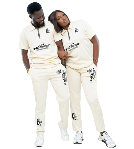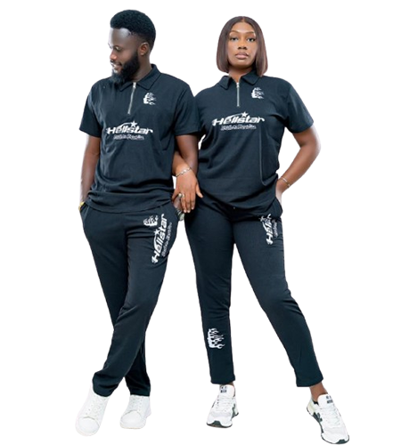 Affichez une allure décontractée et tendance avec cet ensemble assorti pour homme et femme. Confectionné dans un tissu doux et confortable, il se compose d’un t-shirt à col zippé et d’un pantalon ajusté, tous deux ornés d’imprimés noirs stylisés “Hellstar”. Sa coupe sportive chic et ses finitions soignées en font un look parfait pour les sorties décontractées, les week-ends ou les activités en duo. Un style affirmé, minimaliste et coordonné à porter en couple ou individuellement.